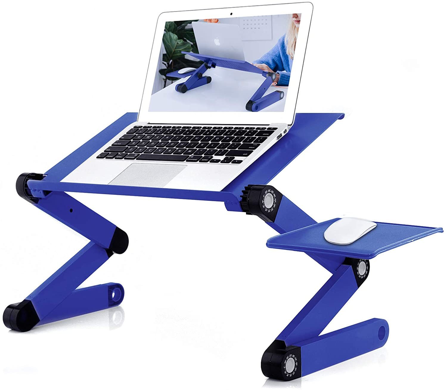 Adjustable Laptop Desk; RAINBEAN Laptop Stand for Bed Portable Lap Desk Foldable Table Workstation Notebook Riser with Mouse Pad; Ergonomic Computer Tray Reading Holder Bed Tray Standing Desk