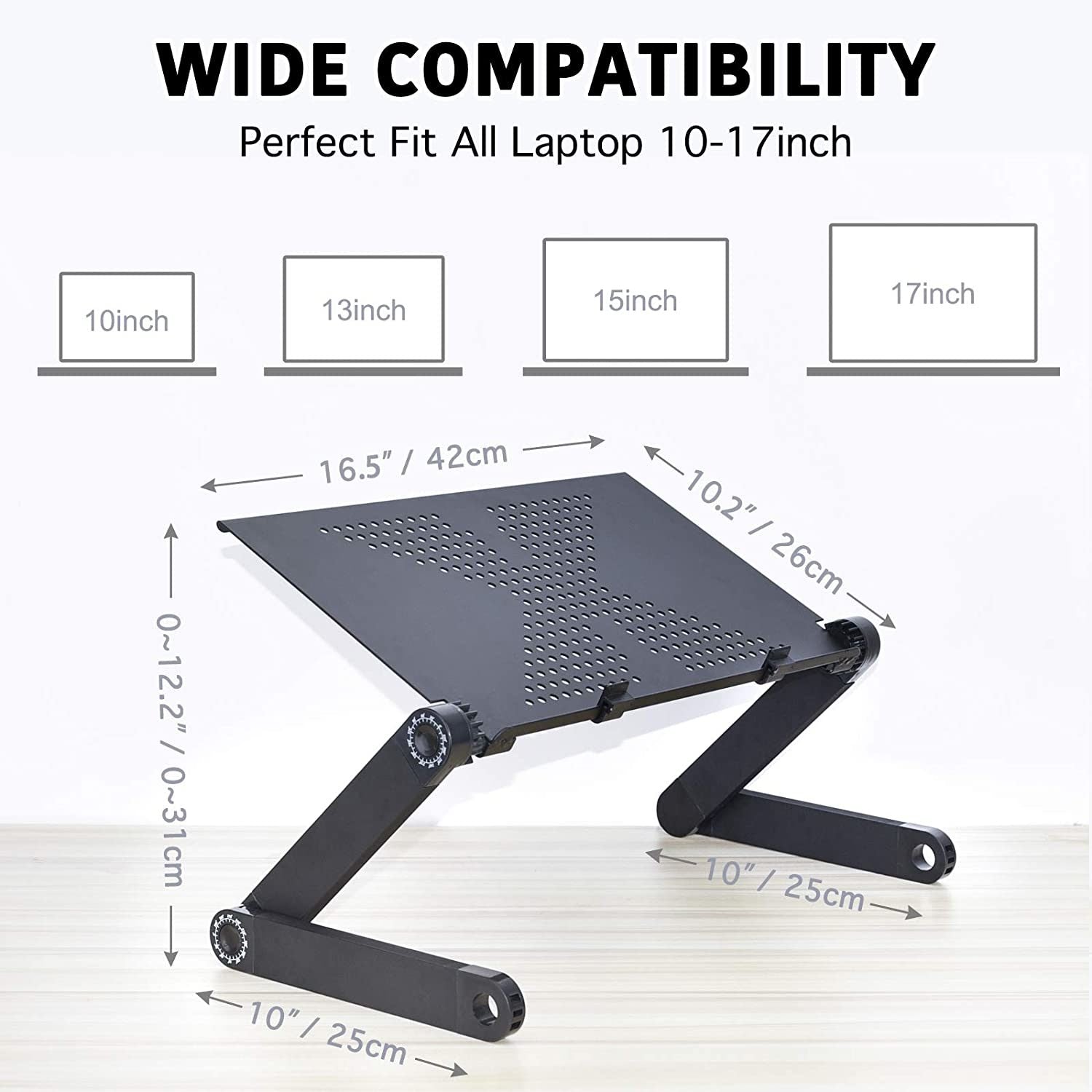 RAINBEAN adjustable laptop table can be used as a cozy desk for bed or sofa, Writing standing desk, dinner TV serving tray, sound equipment, book holder, writing desk and tablet holder etc, meets all your different demands.